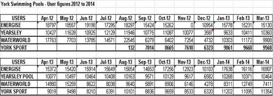 “Listing each pool separately, for each month for the last 2 years what were the attendances at York swimming pools?”
